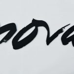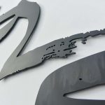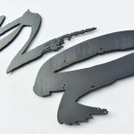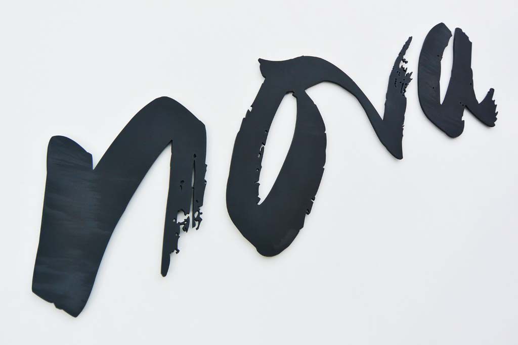 Logo-Schriftzug für das Restaurant NOVA aus geschwärtzem Stahl.
